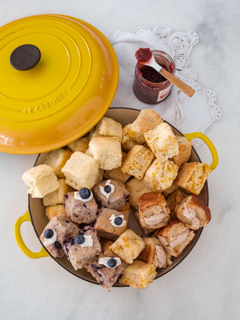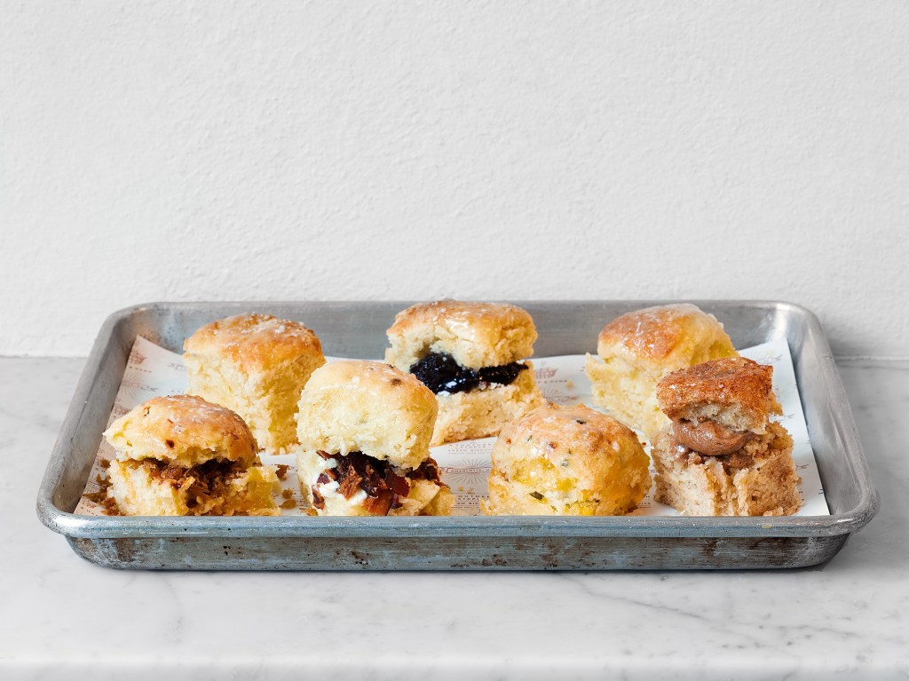 Now let me take a moment to talk about these biscuits. If you ever find yourself in any one of the four locations I listed above, then do yourself a favor. Go straight to Callie’s Hot Little Biscuit and buy one…or ten. My husband and I like to stop by the downtown Market Street location and grab the mix and match trio to share as a snack (It’s only $6!!) And Oh. My. Goodness. Gravy. They are so good. Our favorite flavors? Country Ham, Blackberry, and Cinnamon. They also sell full-sized biscuit sandwiches or you can build your own with add-ins like pimento cheese, a fried egg, roasted tomatoes, and peach basil jam…just to name a few. Now I’m going to do something really unfair…I’m going to show you pictures of these little bites from heaven: