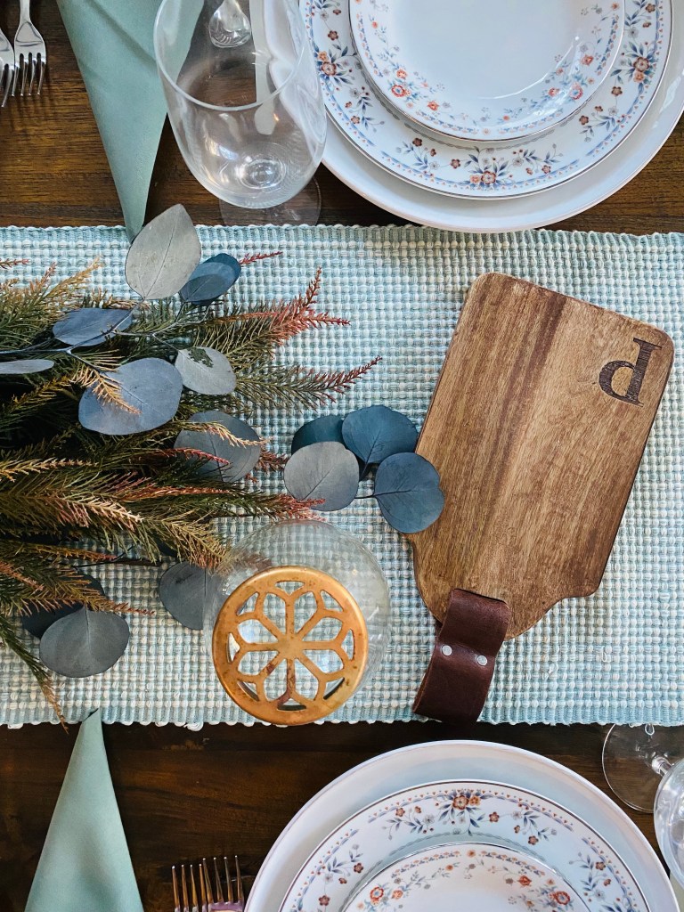 The last thing I did was to add some copper, antique brass, and wood items to the table just to balance all the lighter, airy colors with something a bit deeper.