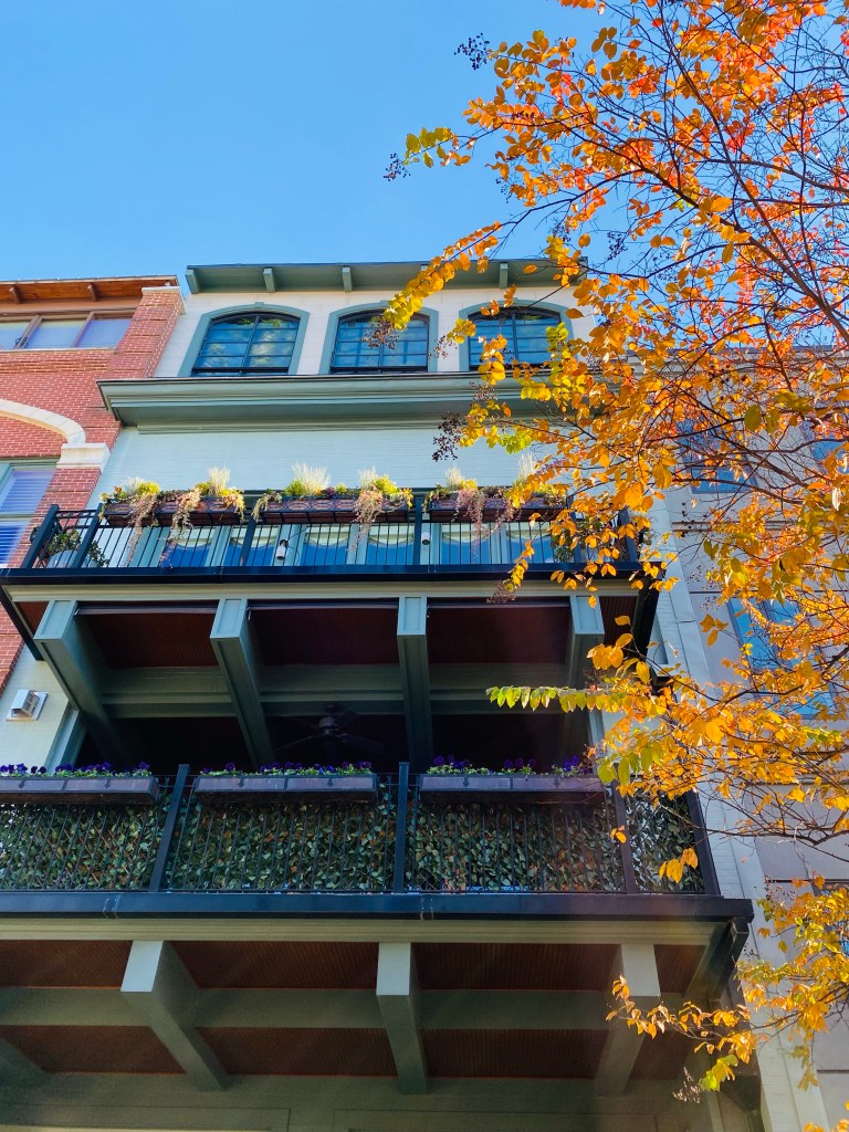 We’ve visited Greenville many, many times (because we love it so much) but I think it’s especially beautiful this time of year when you have this perfect mixture of Fall colors and Christmas decorations brightening up the entire town, side by side, as if they’re unashamedly competing for your attention.
