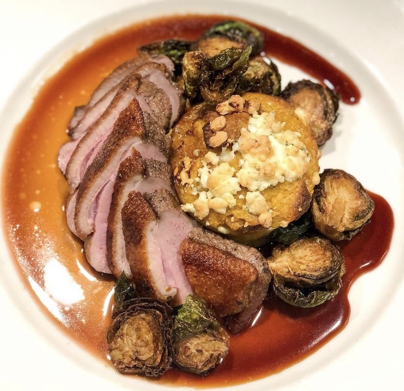 I ordered the caramelized pear salad with Champagne vinaigrette for a starter and the pan roasted duck breast with this yellow squash soufflé that I’m still dreaming about almost 11 years later for my main. Every bite was a mouthwatering miracle.